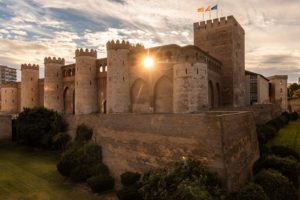 Bueno, pues tiene la Basílica del Pilar. Nuestra Señora del Pilar, que es la Virgen de la Hispanidad. Dicen que los aragoneses pueden no creer en Dios, pero creen todos en la Virgen del Pilar. Y San Jorge, que es el patrón de Aragón. Tenemos la Aljafería, que es la sede de las torres de Aragón. Que es un palacio musulmán precioso. Y luego tenemos la Catedral del Aseo.
