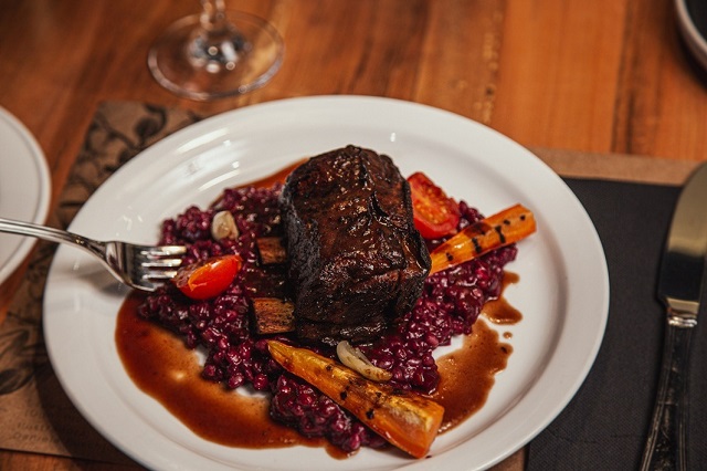 Entre las especialidades del restaurante se encuentran las navajuelas en escabeche con sidra de Punucapa, la empanada de loco frita con salsa de ají cacho de cabra, y el increíble asado de tira con cremoso de mote y betarraga. También destacan preparaciones marinas como el tiradito de loco a la leche de tigre de ají amarillo o el chupe de congrio dorado, que rinden homenaje a la cocina costera del sur. Para el cierre dulce, el restaurante ofrece tentaciones como un postre de castañas con crema, murta fresca y castañas tostadas o una panna cotta, clásico postre italiano, preparado con miel de ulmo y almendras garrapiñadas.
