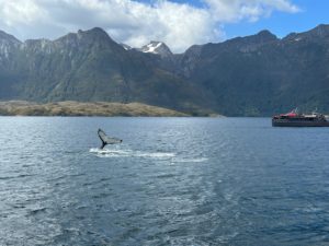 A medida que la embarcación avanza, diversos albatros de ceja negra y petreles aparecen planeando con sus inmensas alas, junto con pingüinos magallánicos que se dejan ver para saludar y acompañar el trayecto. Luego de pasar por dos glaciares en Isla Santa Inés, se llega al momento esperado por todos: el Parque Marino Francisco Coloane y las impresionantes ballenas jorobadas.
