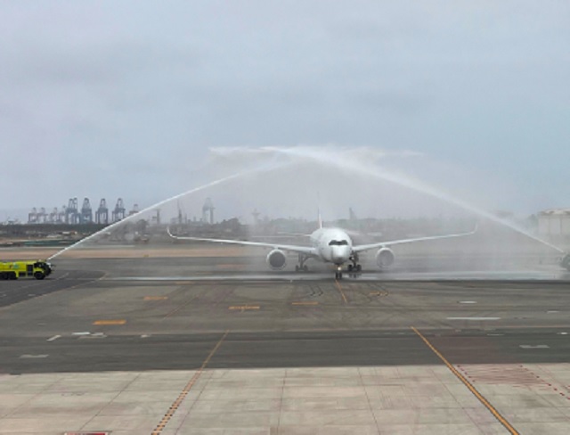 Recursos son recursos. El diario peruano El Comercio tuvo la idea de viajar a Madrid y así poder ser parte del primer vuelo que despegó desde el nuevo terminal -de hecho, el avión fue bautizado con agua por sus operarios en una curiosa ceremonia de iniciación que se vio en el Instagram del mismo aeropuerto- describiéndolo así: