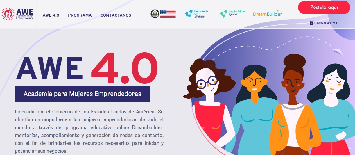 Con el propósito de promover el empoderamiento económico de las mujeres, el Centro de Emprendimiento e Innovación de la Universidad Pacífico – Emprende UP llevará a cabo la segunda edición del programa “AWE 4.0” (Academy for Women Entrepreneurs), gracias al Gobierno de Estados Unidos y el impulso en nuestro país a través de la Embajada de Estados Unidos. Esta es una iniciativa líder en apoyo al emprendimiento femenino en el Perú.