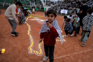 Posteriormente, la cantautora chilena de origen palestino, Daniela Shejade, interpretó una canción que emocionó profundamente a los asistentes, mientras un mapa con la forma de la Palestina histórica fue encendido por más de 20 niños portando velas.
