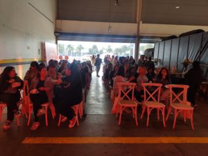 La firma de movilidad comaprtida en plataforma de origen chino, DiDi, juntó el martes 15 de octubre a casi cien mujeres que manejan en su plataforma en el recinto Movicenter, al norte de la capital chilena.