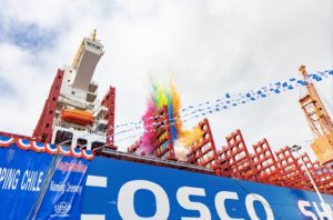 “Estoy muy orgullosa de ser la madrina de Cosco Shipping Chile, el cual, es el último barco de una serie de 6 embarcaciones de esta naviera. Tiene 14.100 TEUs y su diseño demoró cerca de un año y 14 meses en ser construido. Este 25 de septiembre será su primera prueba en el mar, la que dura cinco días, y si todo sale bien este 25 de octubre partirá a Shanghái y luego a Sudamérica”, puntualizó Soler.