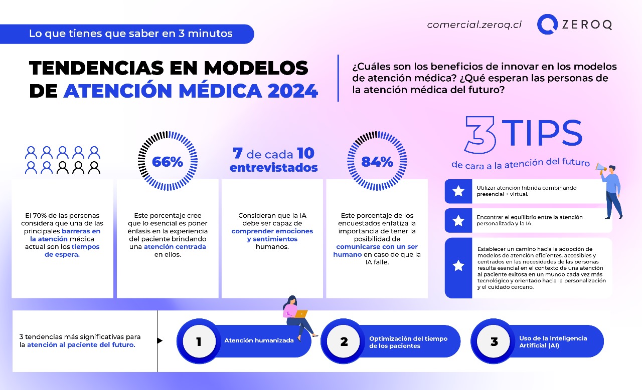 Así lo revela el informe «Mirada hacia el futuro: Tendencias en modelos de atención médica 2024», realizado por ZeroQ, startup que provee soluciones de automatización de canales de atención, con el objetivo de evaluar la situación actual del sector salud y explorar las expectativas de los pacientes y cómo mejorar su experiencia y niveles de satisfacción.