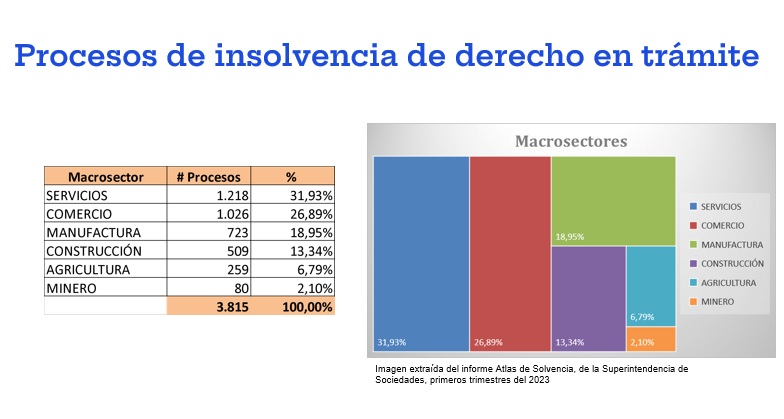La insolvencia en estos sectores ha impactado directamente en la ocupación de los colombianos y ha generado una urgente necesidad de protección contra los riesgos financieros que amenazan la estabilidad de las empresas. Según el informe del mercado laboral del DANE, el sector de comercio y reparación de vehículos automotores representa el mayor porcentaje de personas ocupadas en el país, con un 17,5 %. Le sigue la industria manufacturera con un 10,8 % y la construcción con un 7,4 %.