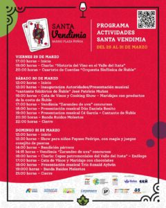 Todo lo anterior será complementado con diversas actividades como música en vivo, además de una demostración del pisado de uvas para la elaboración del vino, y la venta de un ticket por $8.000 para acceder a una copa grabada y tres degustaciones de vino de los expositores.