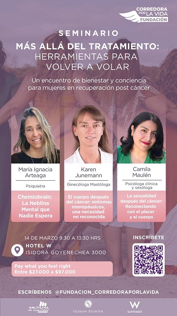 Salud mental, física y sexualidad post-cáncer son los temas que se abordarán en Seminario: ‘Más allá del tratamiento: Herramientas para volver a volar’ que se realiza este sábado 14 de marzo en Hotel W Santiago.