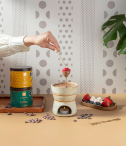 Además, para los amantes del fondue o aquellos fanáticos de la cocina que realizan preparaciones con la cremosidad y sabor del chocolate, la chocolatería también cuenta con chocolate bitter y leche sólido para derretir, especialmente elaborados para baños de chocolate, fondue o incorporar en repostería.